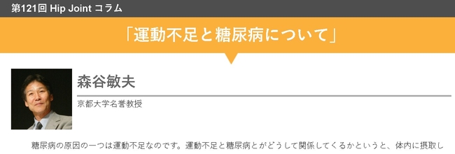 この度は「第121回ヒップジョイントコラム[運動不足と糖尿病について」を掲載いたしました。